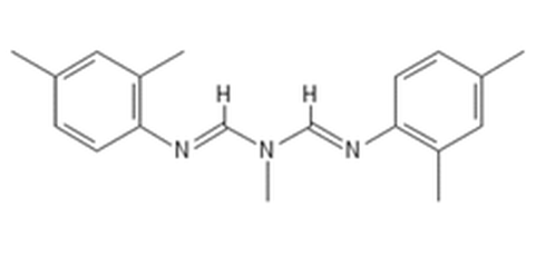 Amitraz has moderate mammalian ` on oral administration but shows markedly less toxicity on skin contact (Table 5 – octopamine receptor agonist amitraz, IRC-19 and illustrations of related chemical structures). The 2016 data show 703 lbs of California sales for amitraz, but limited agricultural use. California data shows initial registration in the 1980’s as a treatment for mite infestations on pears (11/27/1984, initial registration date not listed). Peak use occurred between 1994 and 1997, averaging 66,862 lbs/year (for control of mites on pears, citrus and cotton).